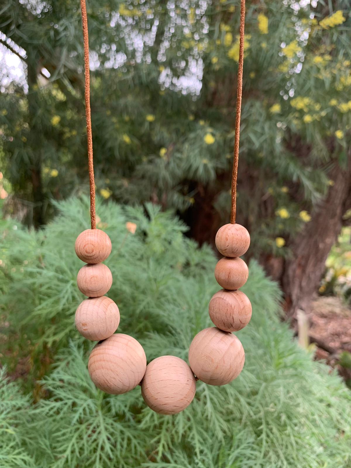 Timeless and natural, made from smooth, food-grade Beech wood beads with an easy-release clasp.